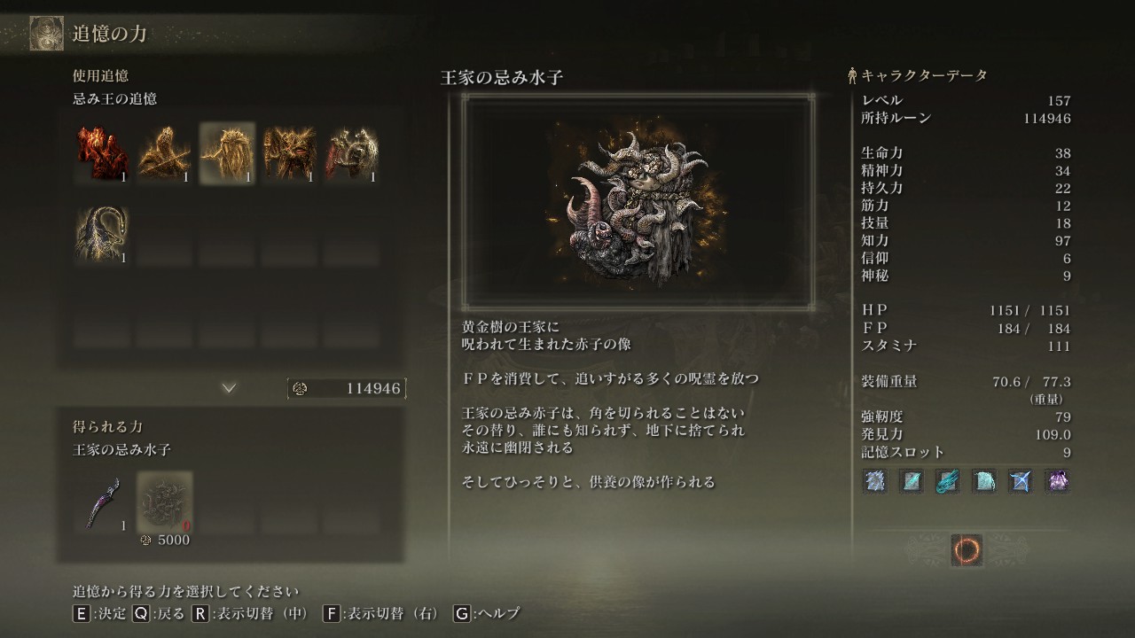 これは、そうやって黄金樹を守るとするものの、やはり自身の血は呪われている穢れた存在であることも受け入れていることが伺える。マジメだ。そして悲しい。