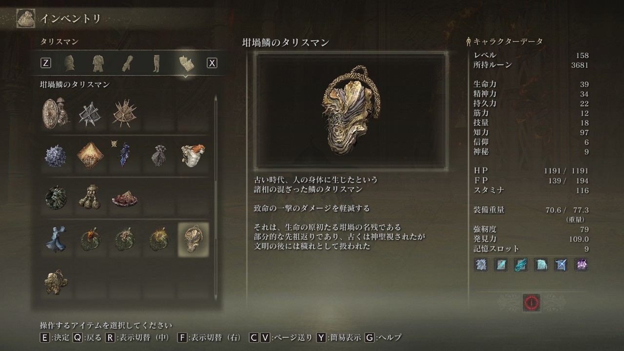 諸相の混ざった鱗のタリスマン致命の一撃のダメージを軽減する