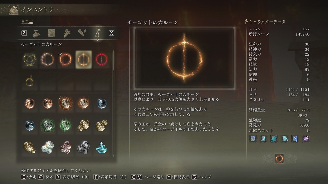 そして、アイテム「モーゴットの大ルーン」の説明には