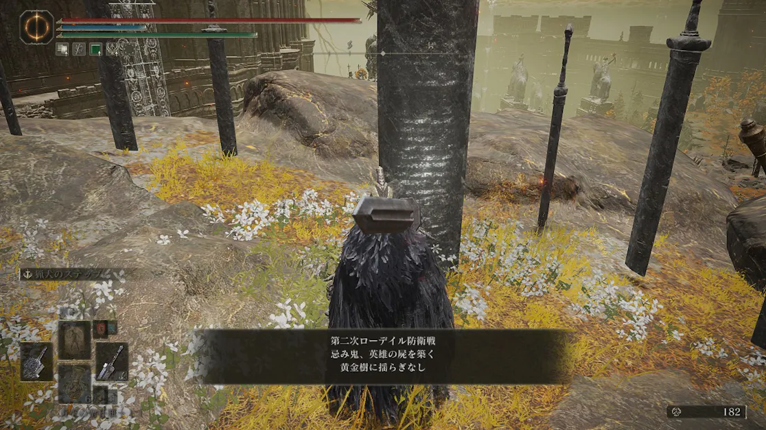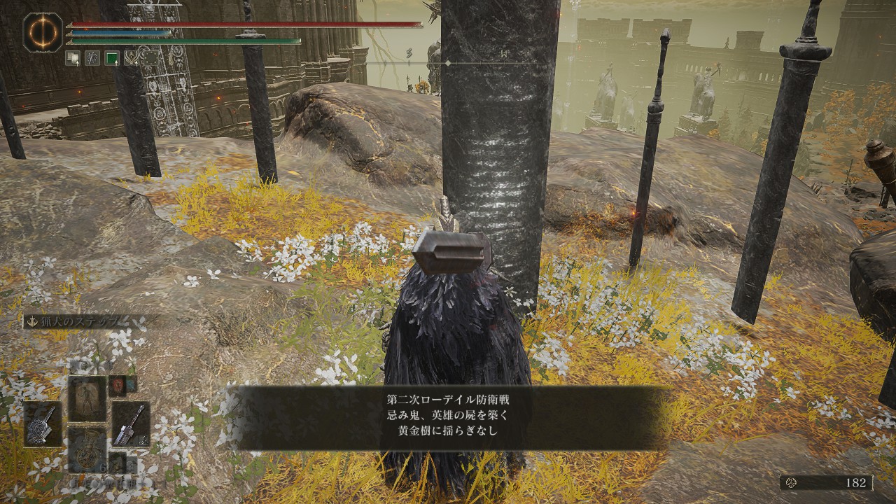 ……と、そんな感じで、忌み子でありながらもローデイルを統治し、一方ではこそっと出張してエルデの王になろうとする褪せ人やら、ローデイルに攻めてくる勢力を片付けていたのがモーゴットなはず。